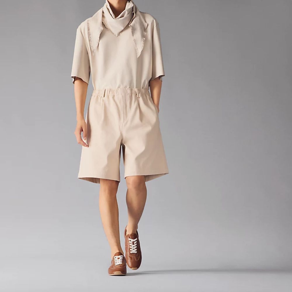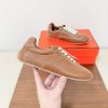 These Hermès sneakers boast an elegant and sophisticated look. The minimalist design is highlighted by an embroidered “H” logo on the side, paired with white laces and a contrasting brown rubber sole. These sneakers are designed for comfort and style, perfect for those who appreciate luxury.