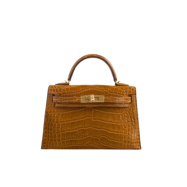 1:1 Replica Bag – Hermès Mini Kelly 20 Alligatore Gold Hardware Brown 20cm