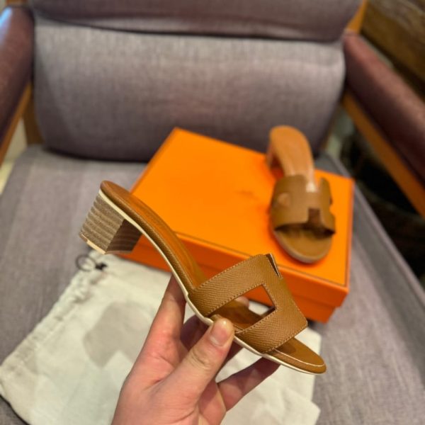 High heel sandal in Epsom Heritage with iconic “H” cut-out detail. For a chic look, perfect for summer.