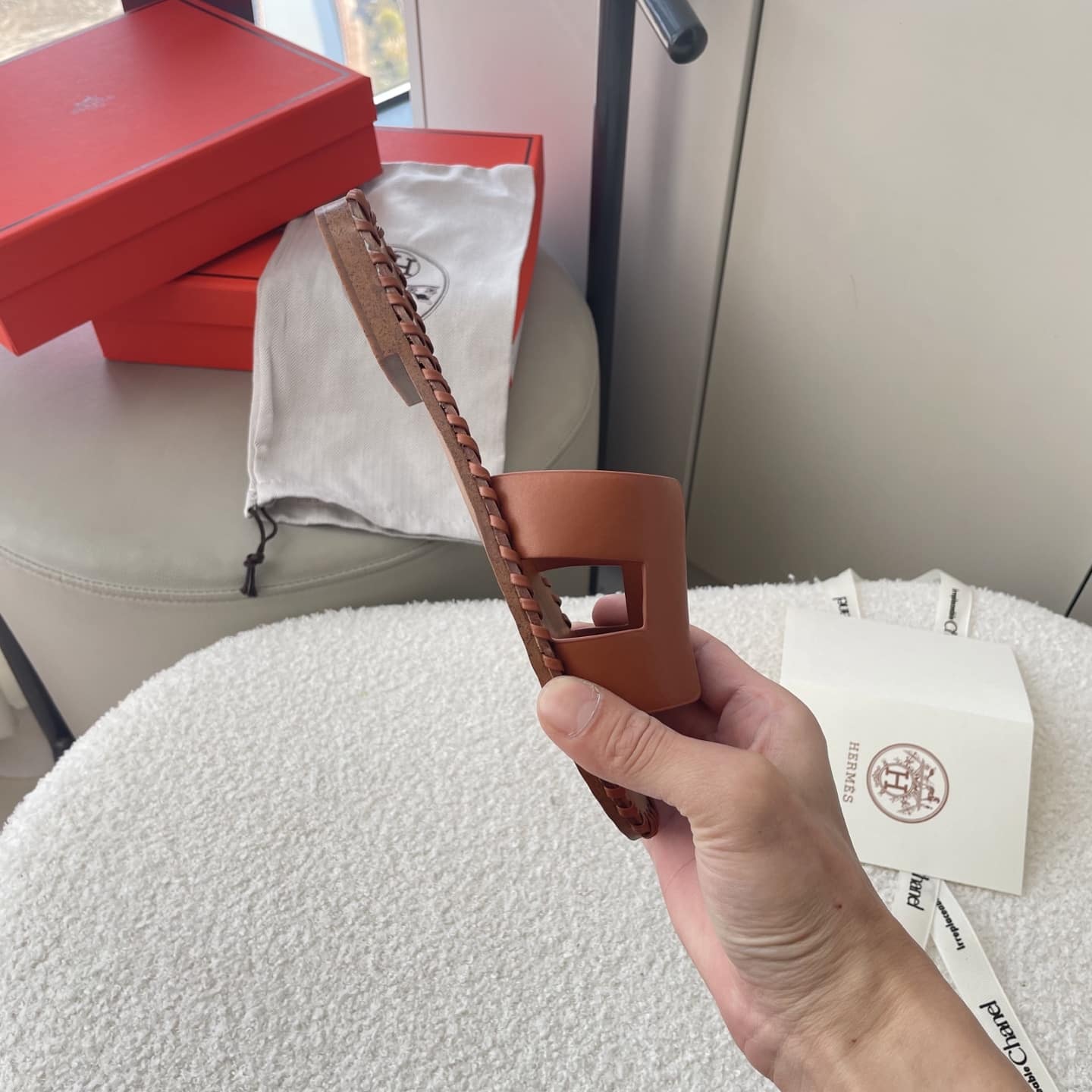 - Brown leather insole