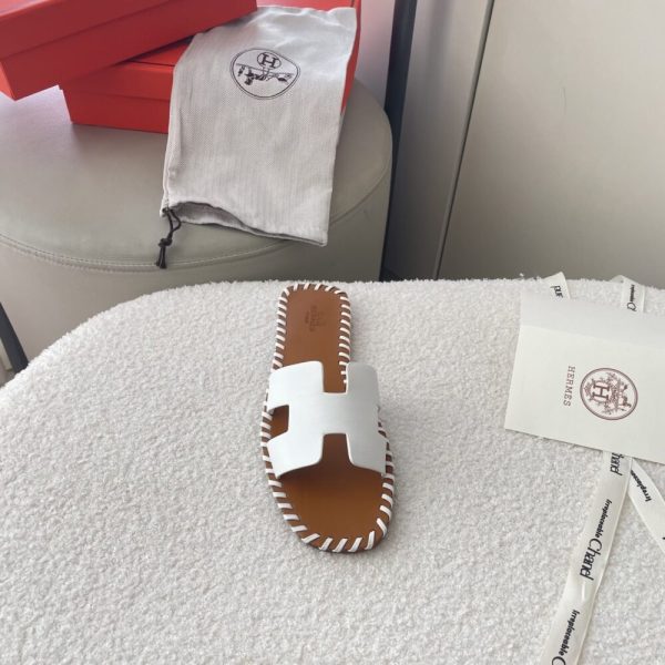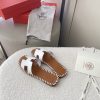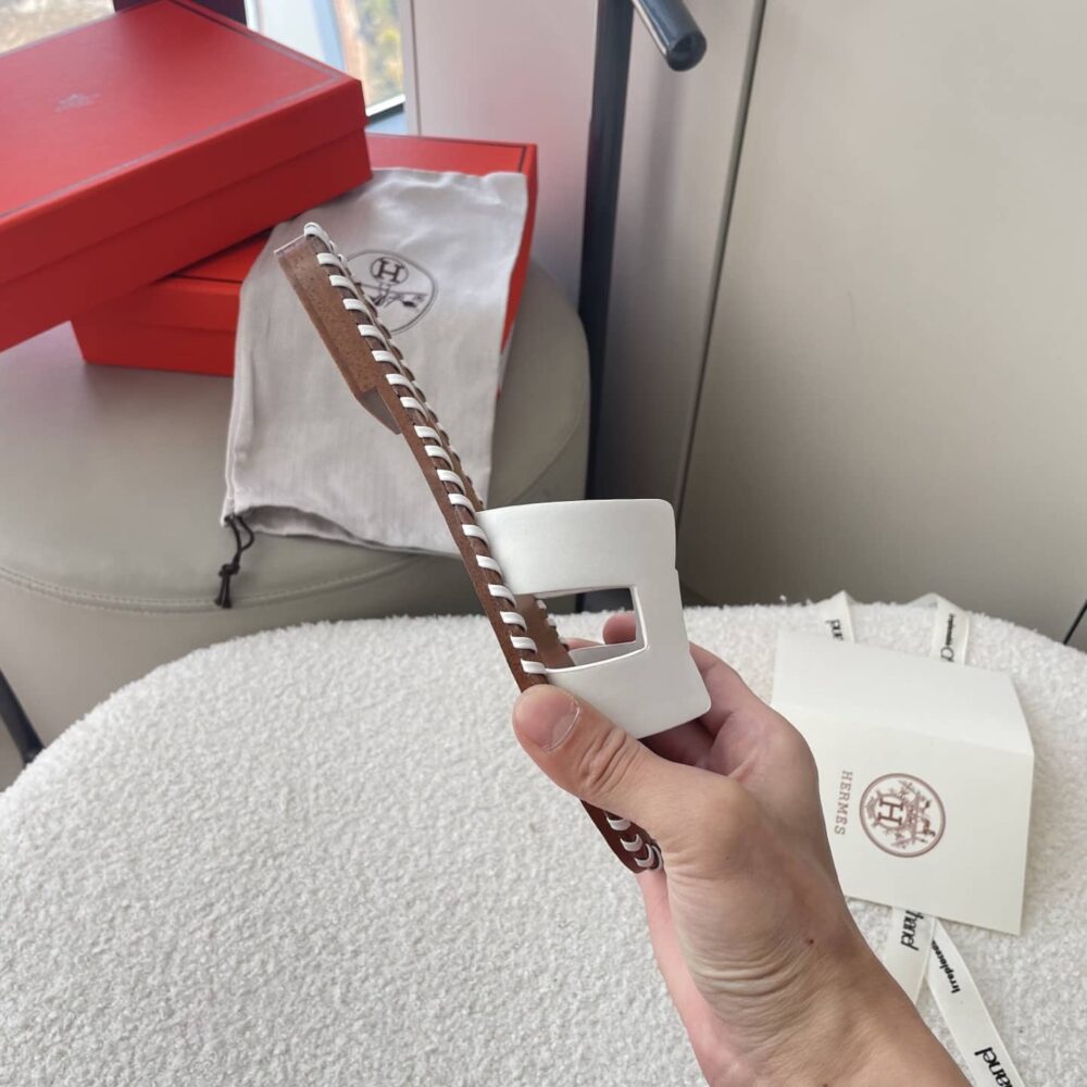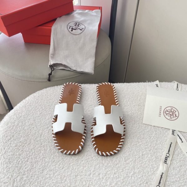 Hermes Oran Sandals Stitching In Brown And White