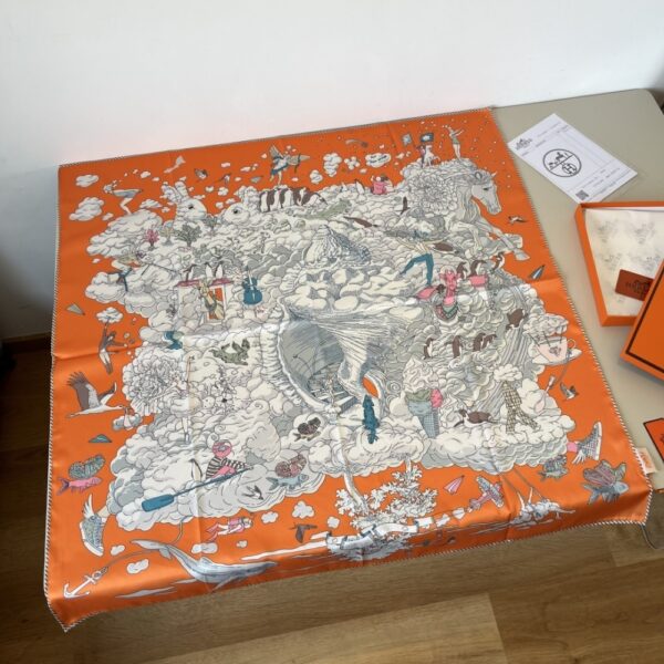 Hermes Sur Mon Nuage Scarf Orange 90Cm