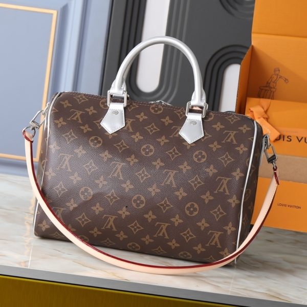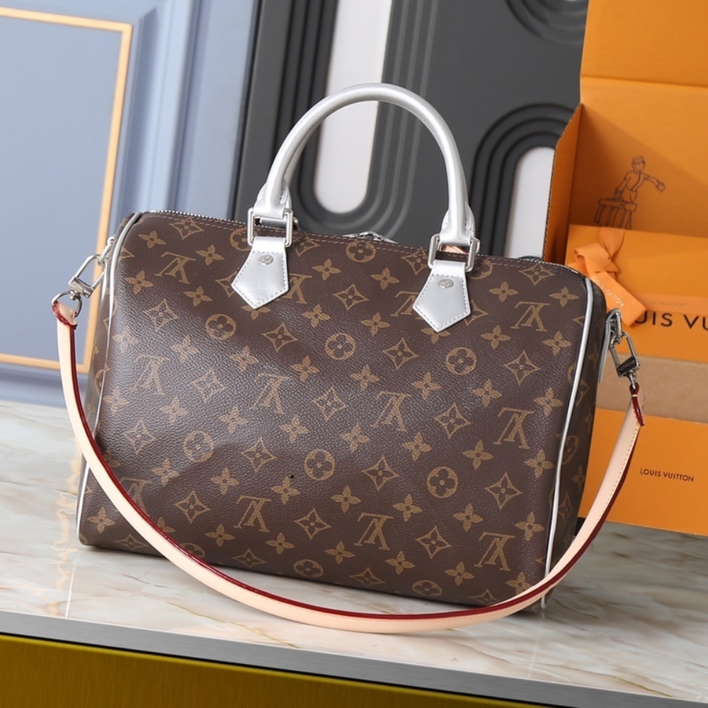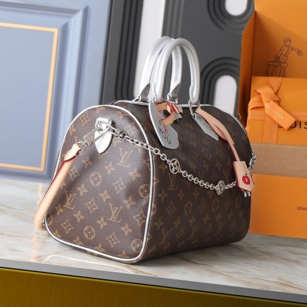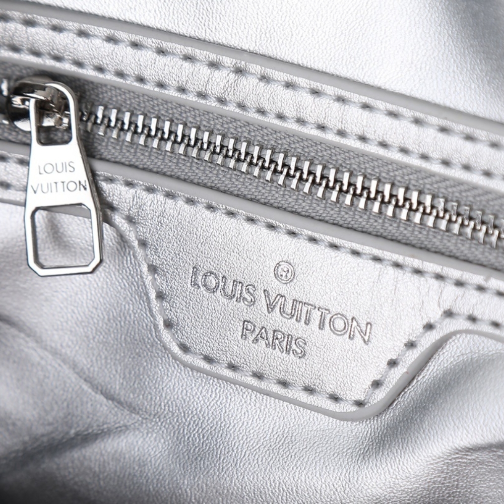 The Speedy Bandoulière 30 is reinvented for the season in this Silver Skyline edition to honor New York City. Crafted from the House’s iconic Monogram canvas, it has metallic leather trims and a removable chain, which is playfully adorned with ice cube-shaped charms. This playful iteration also includes a heart-shaped name tag and keybell, and is fitted with a zipped pocket on the inside to keep small valuables secure.