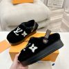 Description 1:1 Replica Shoes Shearling Rubber outsole Patent Monogram-canvas back strap Louis Vuitton-engraved press-studs Monogram Flowers and Vuitton signature on the tread