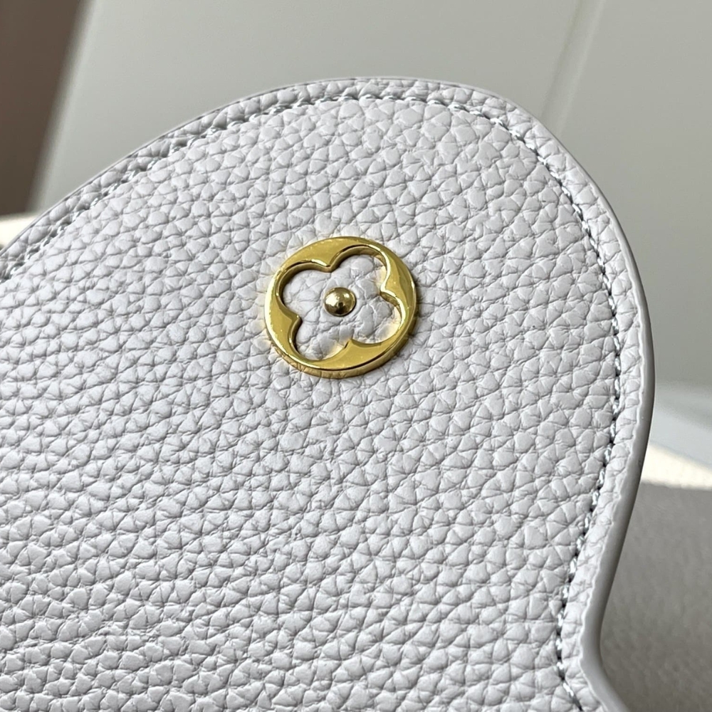 The giant Monogram Flower that adorns this Capucines BB handbag is a work of art, debossed on one half and embossed on the other. With smooth leather, the bag offers incredible depth and texture. The wide bicolor leather strap, detachable, ensures style, comfort, and versatility.