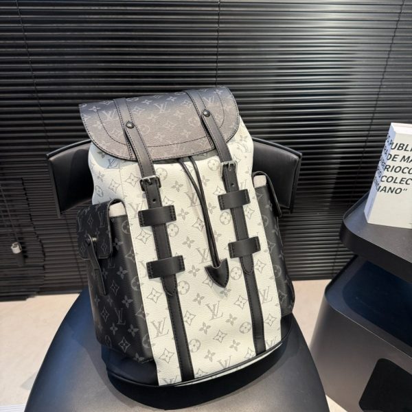 The Christopher PM backpack takes on a striking aspect in Monogram Eclipse Reverse canvas with black and white-leather trim. Two side pockets enable quick access to essentials while the leather flap with press-stud closure keep belongings safe. The Christopher PM is inspired by the design of the rugged hiking rucksack, rendered here in smaller dimensions.
