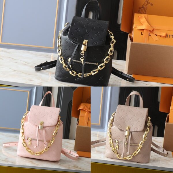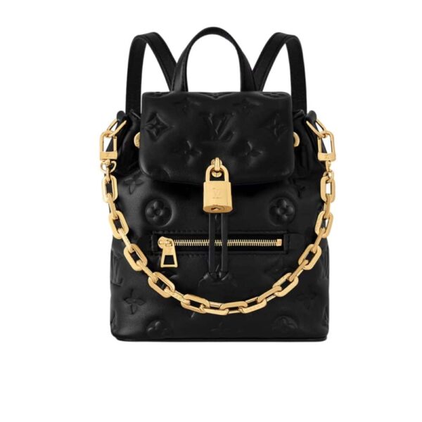 This lightweight Coussin Backpack Mini is crafted from leather adorned with the Maison’s iconic Monogram motif and finished with a removable Coussin chain. The gold-tone LV lock secures your everyday essentials. Featuring a compact size, this model can be worn as a backpack, over the shoulder, or carried by hand.