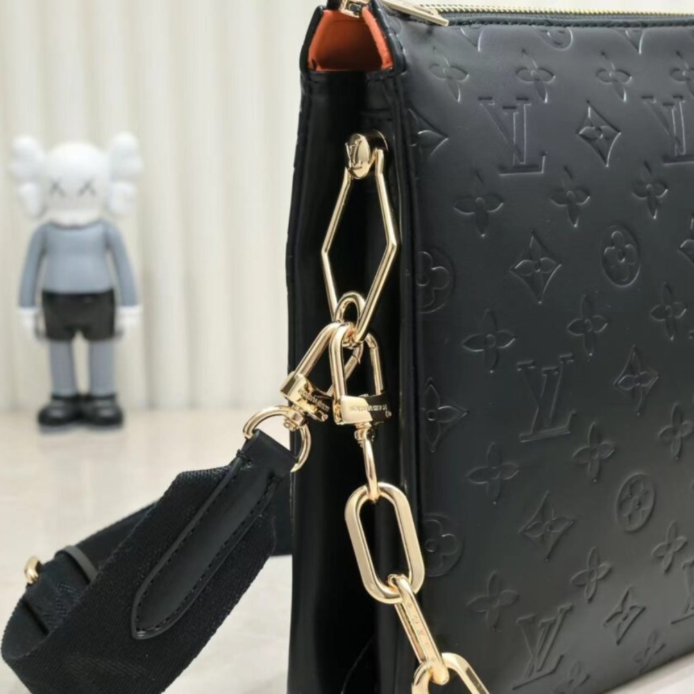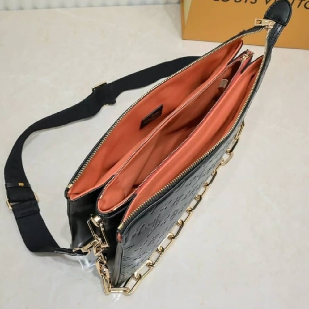 The most eye-catching bag of the Spring-Summer 2021 collection, the Coussin MM handbag is fashioned from puffy, embossed with a Monogram pattern. Voluminous, soft and supple, the bag almost feels like a pillow. An adjustable leather strap allows for shoulder and cross-body carry, while the new Edge Chain invites fashionable under-the-arm styling.