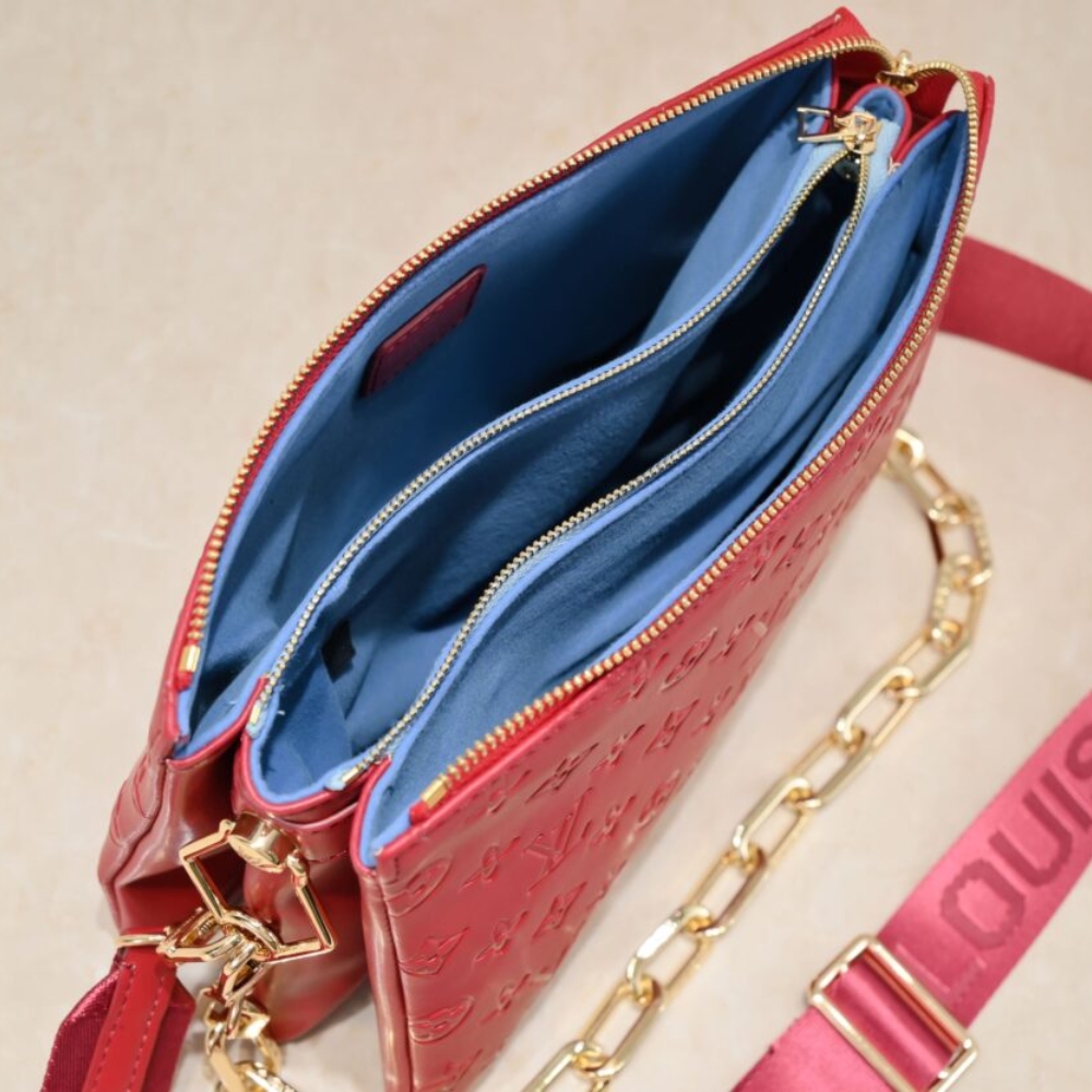 The most eye-catching bag of the Fall-Winter 2021 collection, the Coussin MM handbag is fashioned from embossed with a Monogram pattern. Voluminous, soft and supple, the bag almost feels like a pillow. An adjustable textile strap allows for shoulder and cross-body carry, while the new Edge Chain invites fashionable under-the-arm styling.