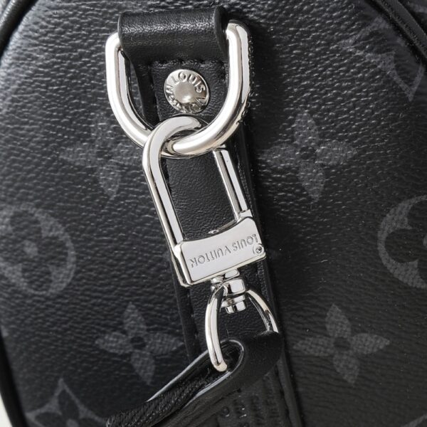 This Keepall Bandoulière 25 bag comes in a contemporary version in Monogram Éclipse canvas. Aged silver metallic finishes, along with colorful leather side bands, top handles, and a tag, energize this compact design. It can be carried by the rolled leather top handles or worn over the shoulder using the adjustable and removable fabric strap.
