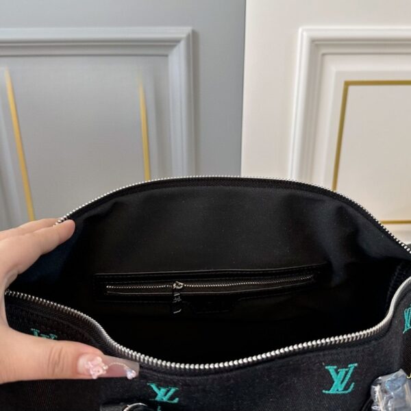 Crafted from the unique LV Blason Denim, the Speedy Bandoulière 40 is a fusion of musical inspiration and the fashion language of Creative Director Pharrell Williams. On the black Denim fabric are intricately embroidered LV logos with a gradient effect, combined with headphone accessories and a leather name tag, both of which are easily removable.