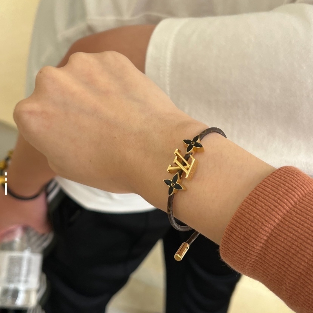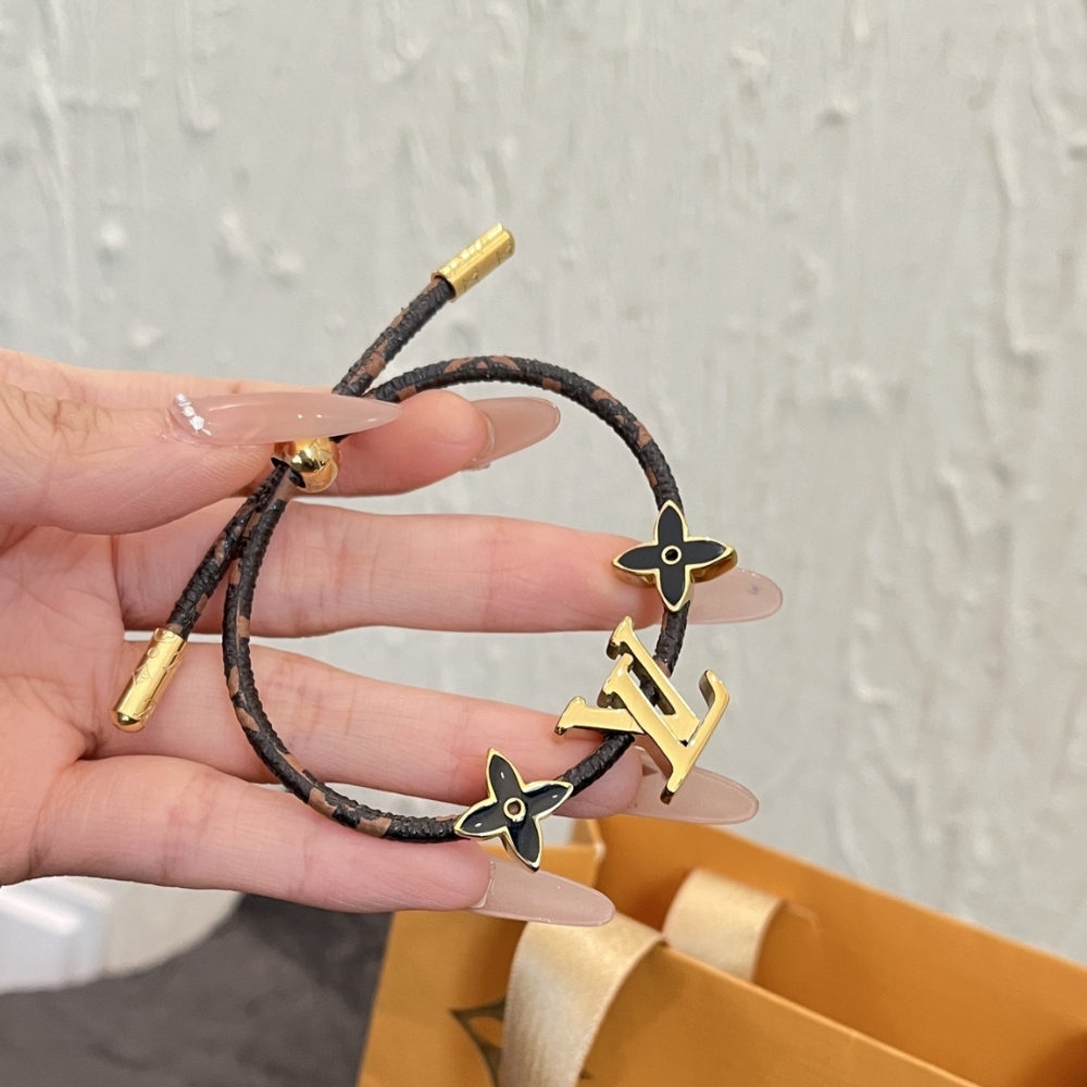 Description 1:1 REPLICA JEWELRY Monogram leather cord Metal with gold-colour finish LV Initials and Monogram Flower emblems Adjustable