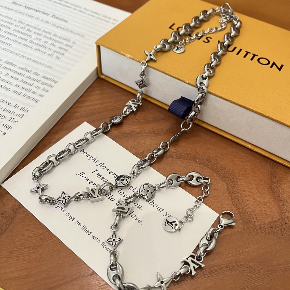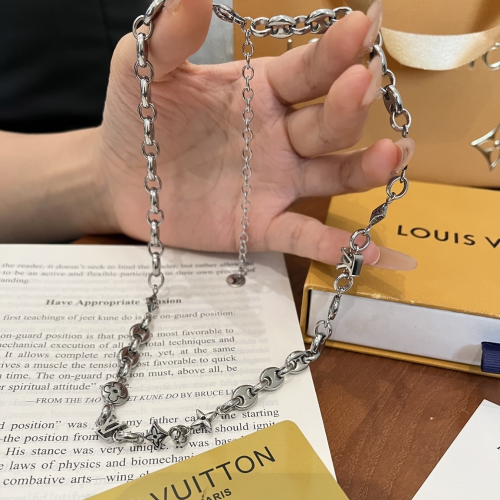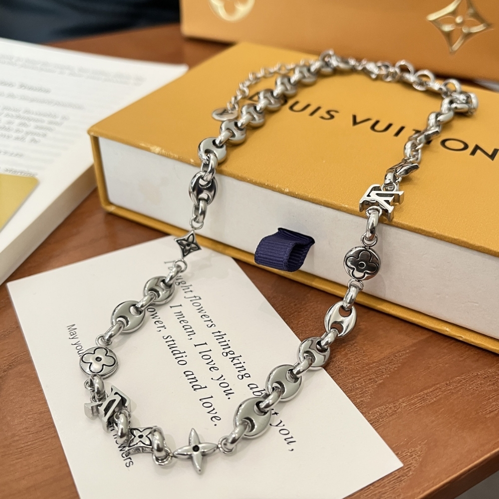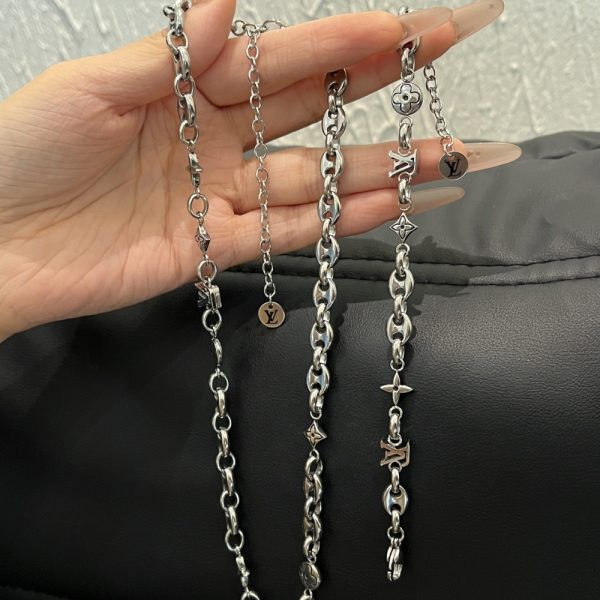 Description 1:1 REPLICA JEWELRY Sterling silver Black patina finish Maillon chain LV and Monogram signatures Adjustable clasp