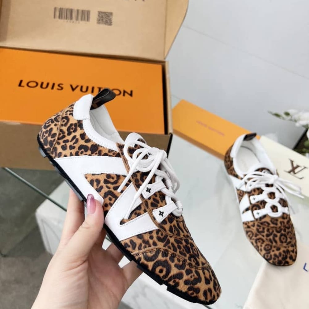 The Louis Vuitton LV Sneakerina Brown exudes bold sophistication with its striking leopard-inspired design and sleek contours. Effortlessly blending comfort and luxury, it elevates your presence with an aura of fearless elegance and timeless prestige.