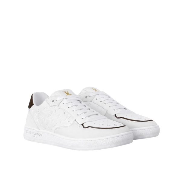 The LV Stadium sneaker is a vintage-inspired model in soft calf leather, which is partially debossed with the Monogram pattern. This design is elevated by rich details, including Monogram-canvas trim at the front and back, and perforations on the toe. The tongue features an LV Initials label, while the outsole bears the Louis Vuitton signature.