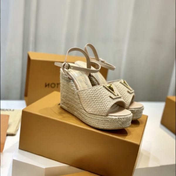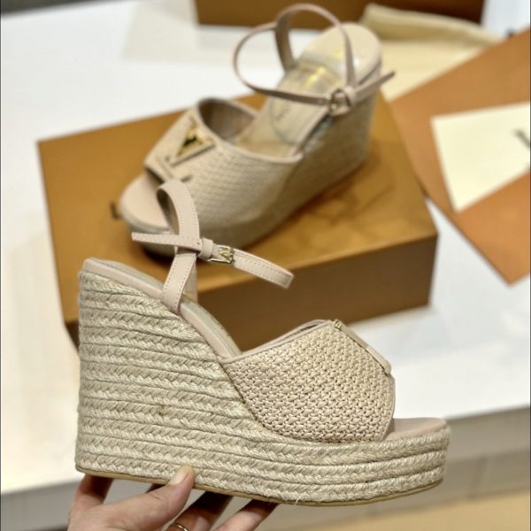 Description 1:1 Replica Shoes Natural Beige Raffia Signature hardware Adjustable buckle strap Rope sole Rubber outsole