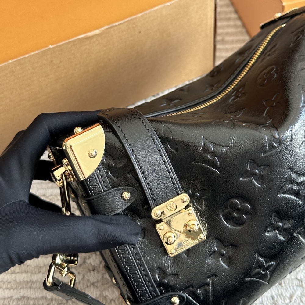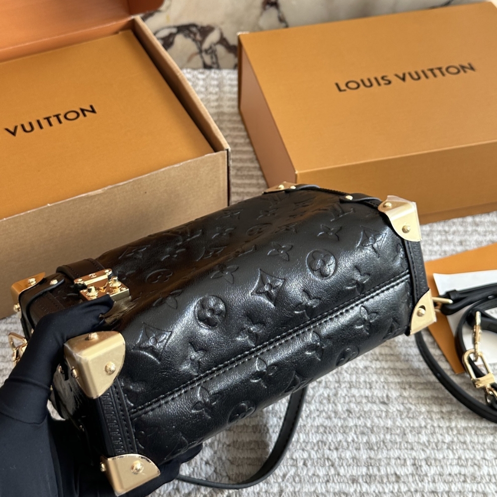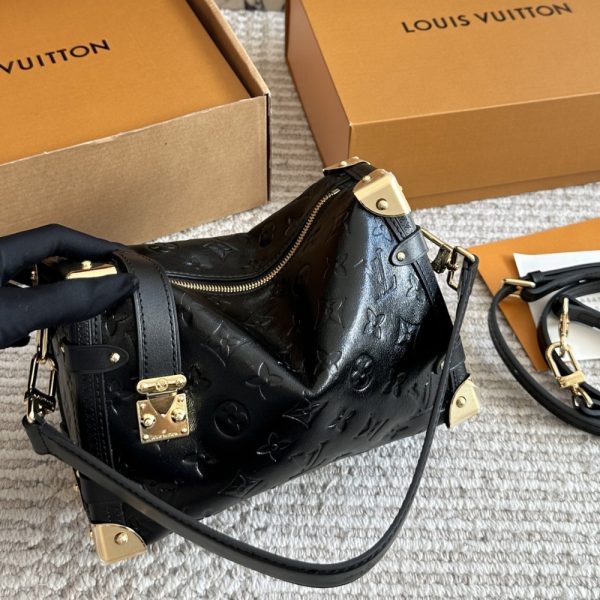 Designed by Artistic Director Nicolas Ghesquière, the elegant Side Trunk MM bag is a tribute to the Maison’s trunk-making heritage. Part of the Monogram Bold collection, this new version is crafted from embossed with the Monogram pattern, combined with metal corner accents and a matching S-lock clasp. The bag features a detachable long strap, allowing for versatile styling options.
