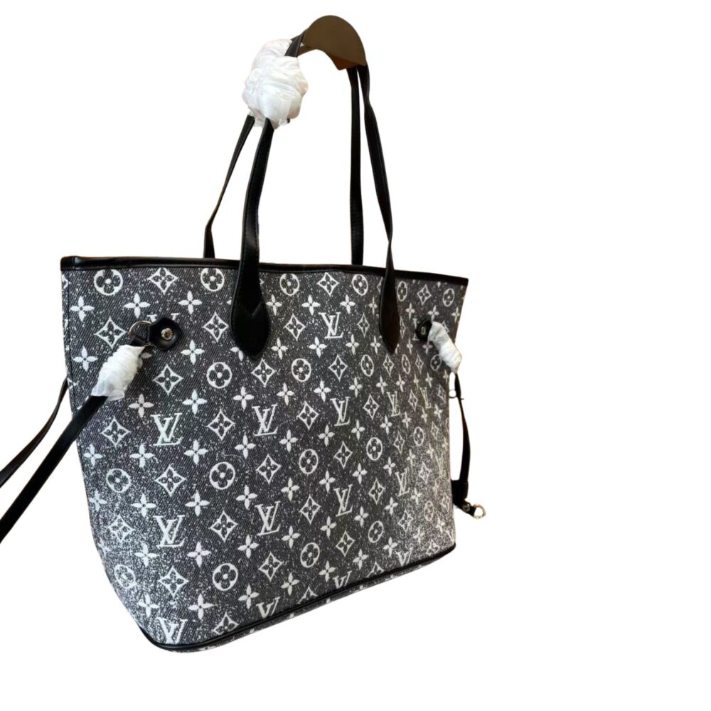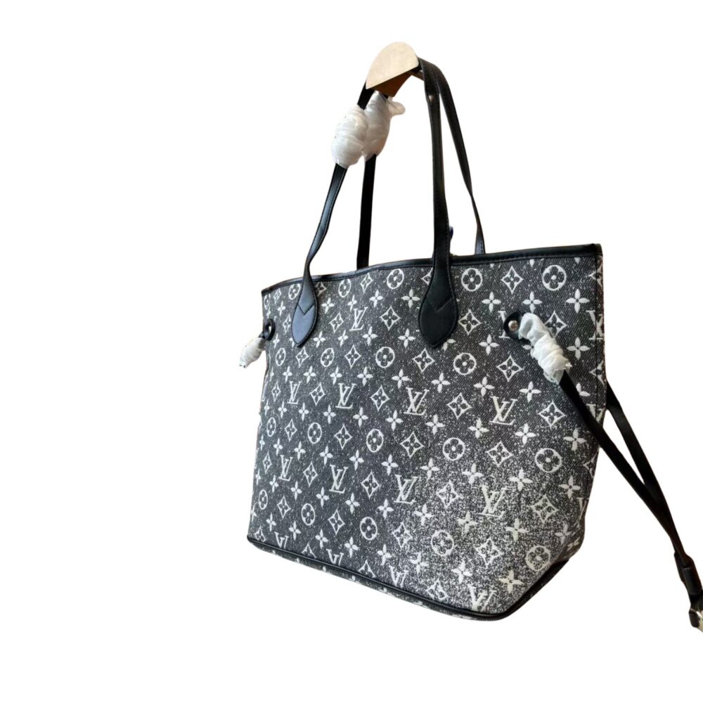 Louis Vuitton Neverfull MM Monogram Jacquard Denim Totes Bag Grey