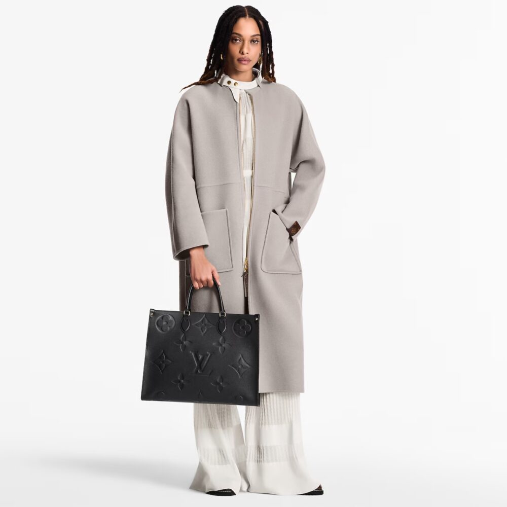 The stylishly oversized OnTheGo GM tote goes from workday to weekend without missing a beat. The bagâs square shape affords plenty of room for stowing office files and a laptop. Versatile, it can be carried by hand or worn over the shoulder on its two long straps.