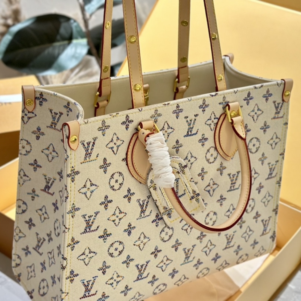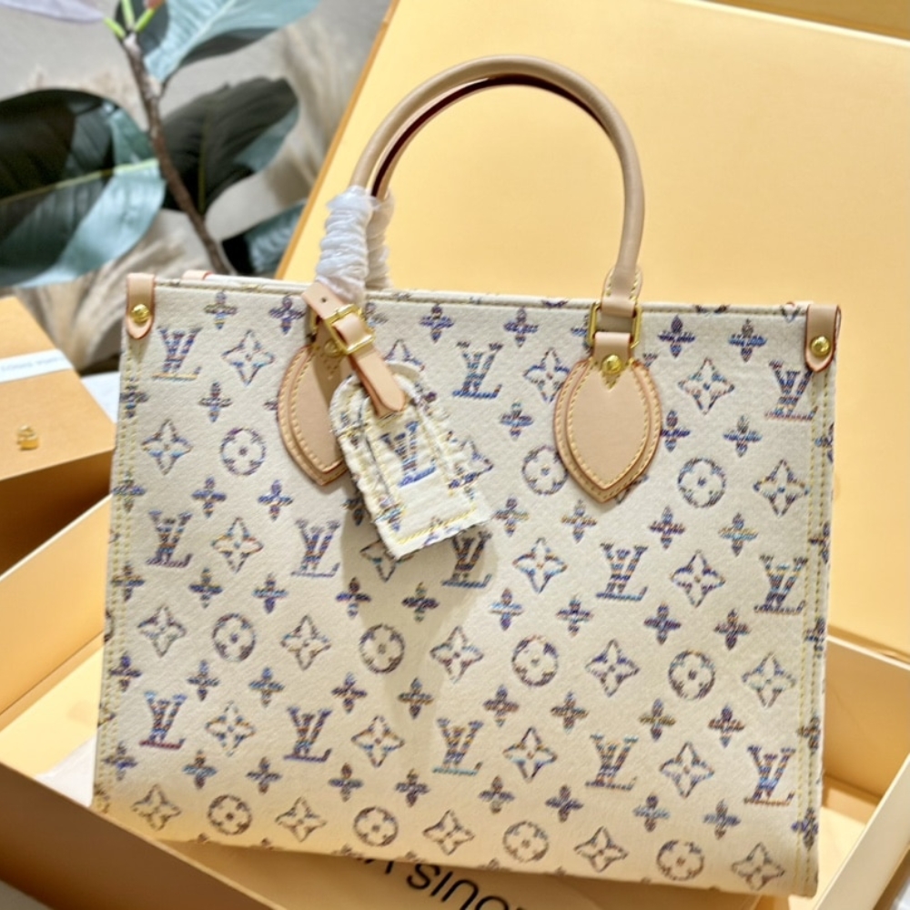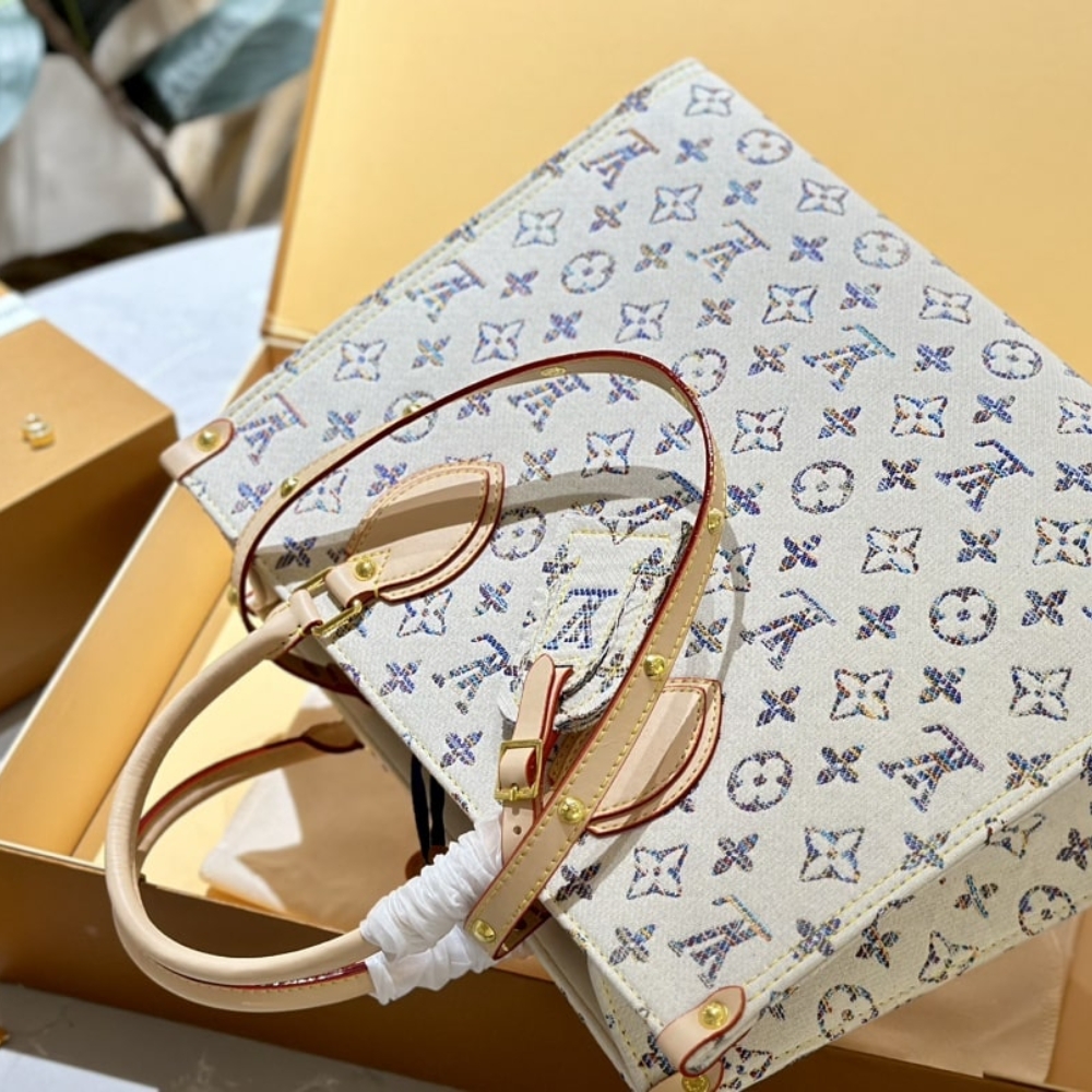 Louis Vuitton Onthego MM Multicolor is crafted from durable jacquard canvas, featuring intricate embroidery and exquisite patterns, these totes exude timeless elegance and sophistication. Designed with fashion-forward colors and floral patterns, these totes add a touch of vibrancy and femininity to your outfit, making a statement wherever you go. Complete with high-quality hardware and a luxurious original hardware purse pouch, our bags combine style and functionality, making them the perfect accessory for modern women.