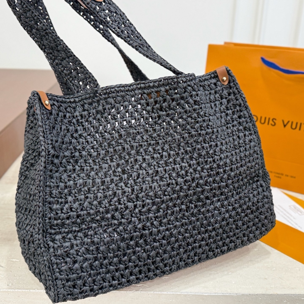 Replica 1:1 – Louis Vuitton Onthego MM Raffia Black 37Cm