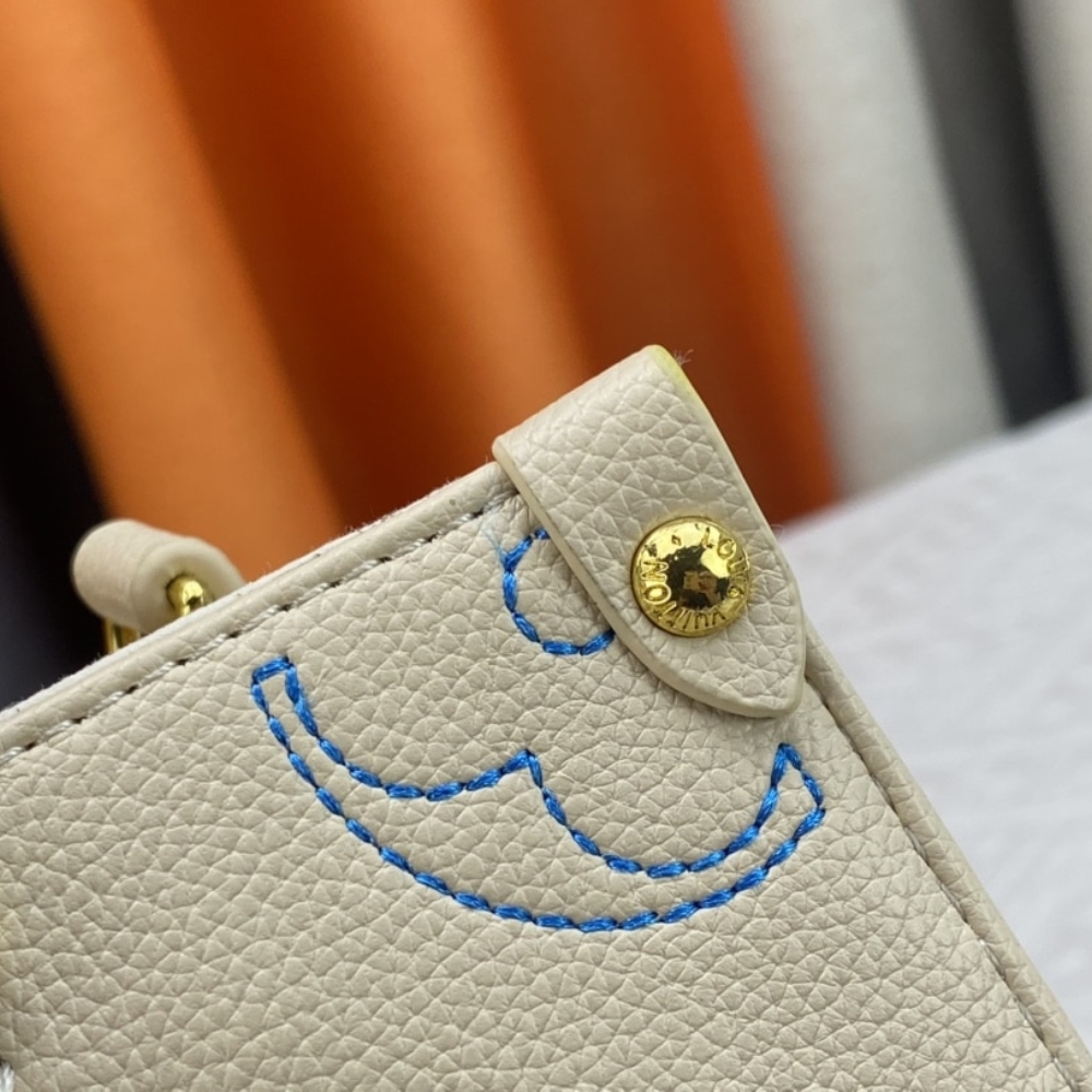 This On the Go Small handbag was introduced in the Fall 2023 LV Academy collection. Crafted from Monogram Empreinte embossed leather with an embroidered Monogram pattern, its playful texture and color make it the perfect bag for school season.