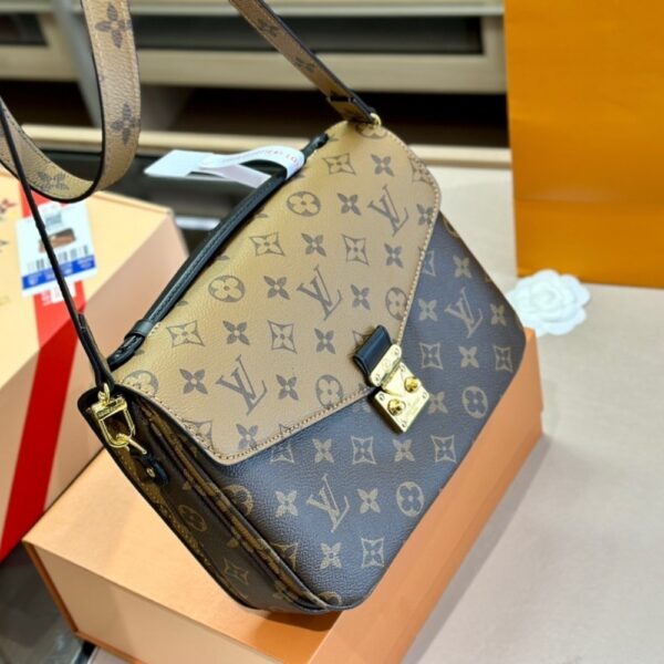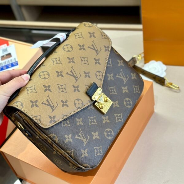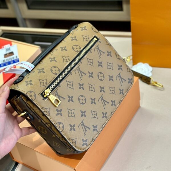 With its distinctive satchel silhouette, the Pochette Métis bag has become an object of fashion desire. This compact, go-everywhere model in trendy Monogram Reverse canvas features a signature S-lock closure with a gleaming gold-tone finish. Versatile and surprisingly roomy, it is fitted with a chic top handle and a long removable strap for shoulder or cross-body wear.