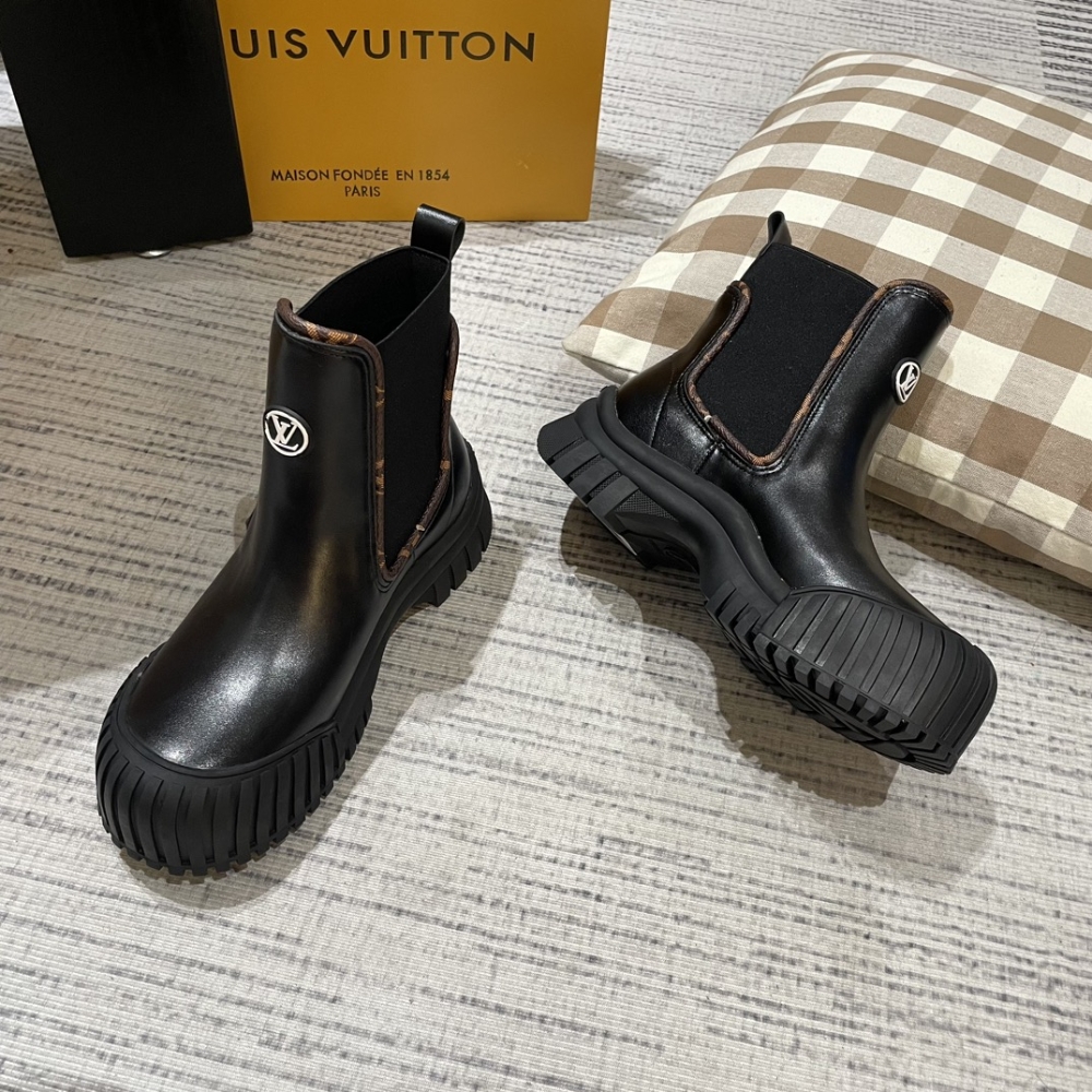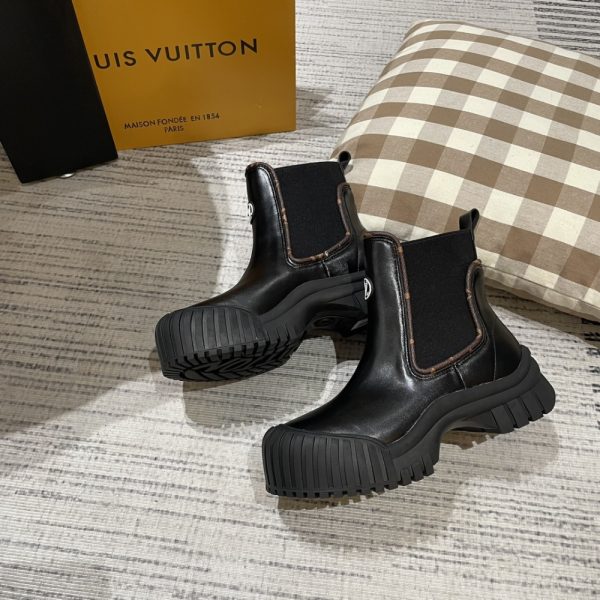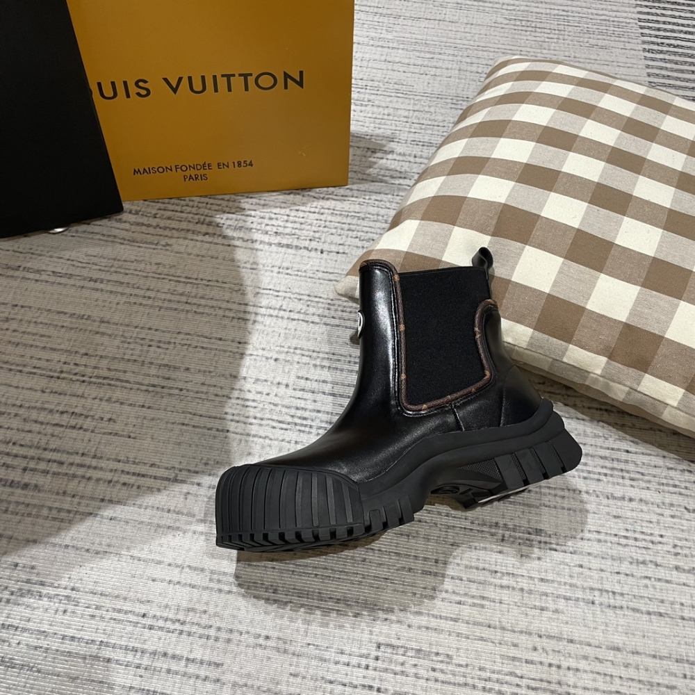 Description 1:1 Replica Shoes Black Calf leather Elastic side panels Rubber outsole LV Circle signature Louis Vuitton signature on the outsole Vuitton signature on the tread
