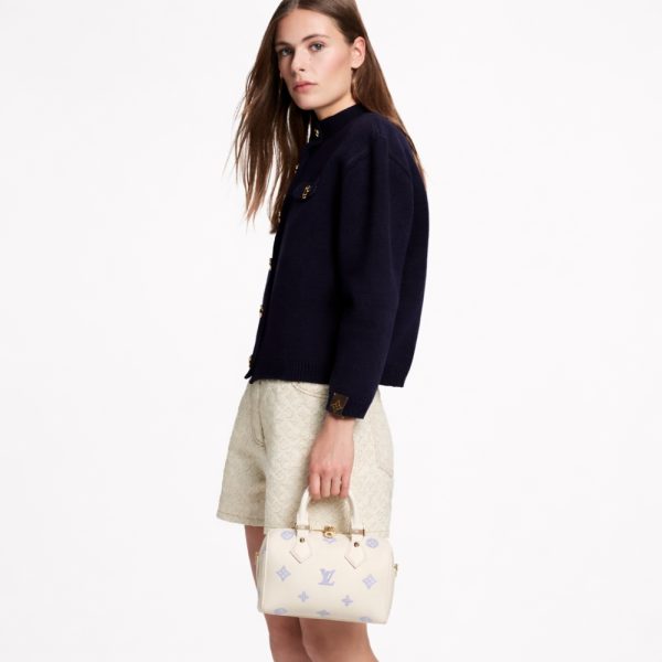 The Speedy Bandoulière 20 bag exudes a fashionable look with its two-tone Monogram leather, accented with the LV logo and cream-colored Monogram pattern. The sophisticated design and handles are inspired by the Speedy travel bag line launched in the 1930s by the French fashion house. The bag can be worn on the shoulder or across the body thanks to the chain and leather strap combination.
