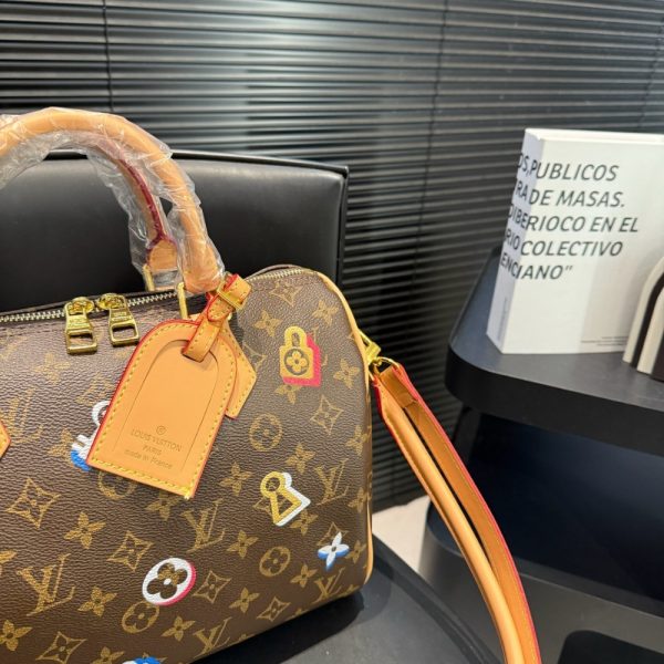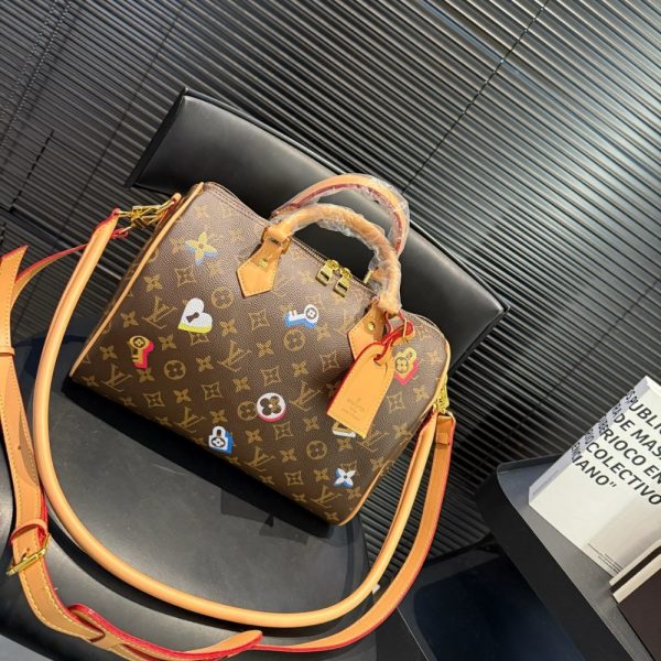 The Louis Vuitton Speedy Bandoulière 30 in Monogram Canvas is a timeless icon of the Maison, combining a rich heritage with effortless modern style. Crafted from the classic brown Monogram coated canvas. The interior is lined with durable textile and includes a convenient pocket for organization, while the signature gold-color hardware and engraved padlock provide a sophisticated finish. Designed for the woman on the go, it features twin rolled leather handles for hand-carry and a detachable, adjustable strap that allows it to be worn comfortably as a shoulder or crossbody bag.
