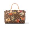 This edition of the Speedy Soft 30 showcases an updated version of the House’s Monogram Dune signature in a vintage-inspired finish. The perfect travel companion, it is decorated with an airplane charm and playful labels in a patchwork effect, which are taken from Gaston Louis Vuitton’s original collection. Attach the longer handle to wear it over one shoulder.