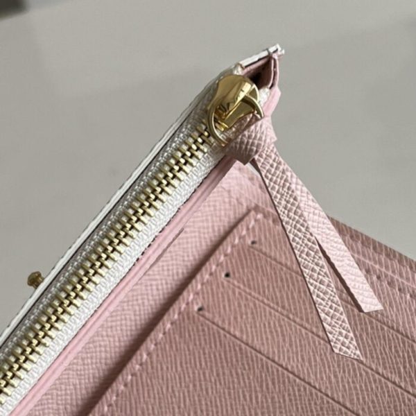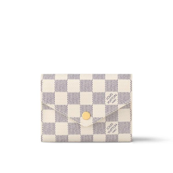 The compact Victorine wallet in Damier Azur canvas combines femininity and functionality. It opens out to reveal many practical features, including card slots and pockets for bills and coins.