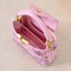 Joyful codes from the re-edition of the Louis Vuitton x Murakami collection elevate the House’s sophisticated Capucines Mini handbag with a spirited twist. Crafted from leather in a fresh shade of pink, the body is scattered with the Japanese artist’s cheerful Cherry Blossom motifs, which are individually embroidered for a celebratory, shimmering finish. Golden hardware adds a polished detail to the top handle, strap and emblematic LV signature.