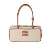 MIUMIU BEAU CANVAS BAG BEIGE AND BRANDY 28CM 5BB173 ACRN F062F V OWM