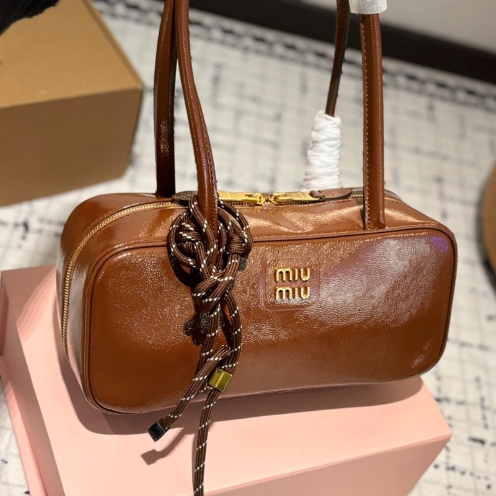 MIUMIU BEAU NAPLAK PATENT BAG PALISANDER 28CM