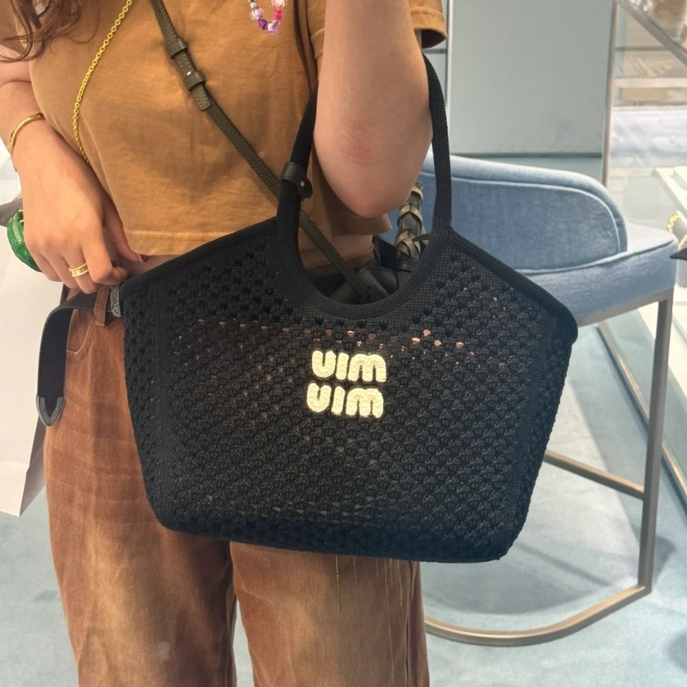 Description 1:1 Replica Bags Measurement: 27 x 21 cm/ 10.6 x 8.3 inches Knit handles Gold-tone hardware Embroidered lettering logo Unlined interior with removable pouch
