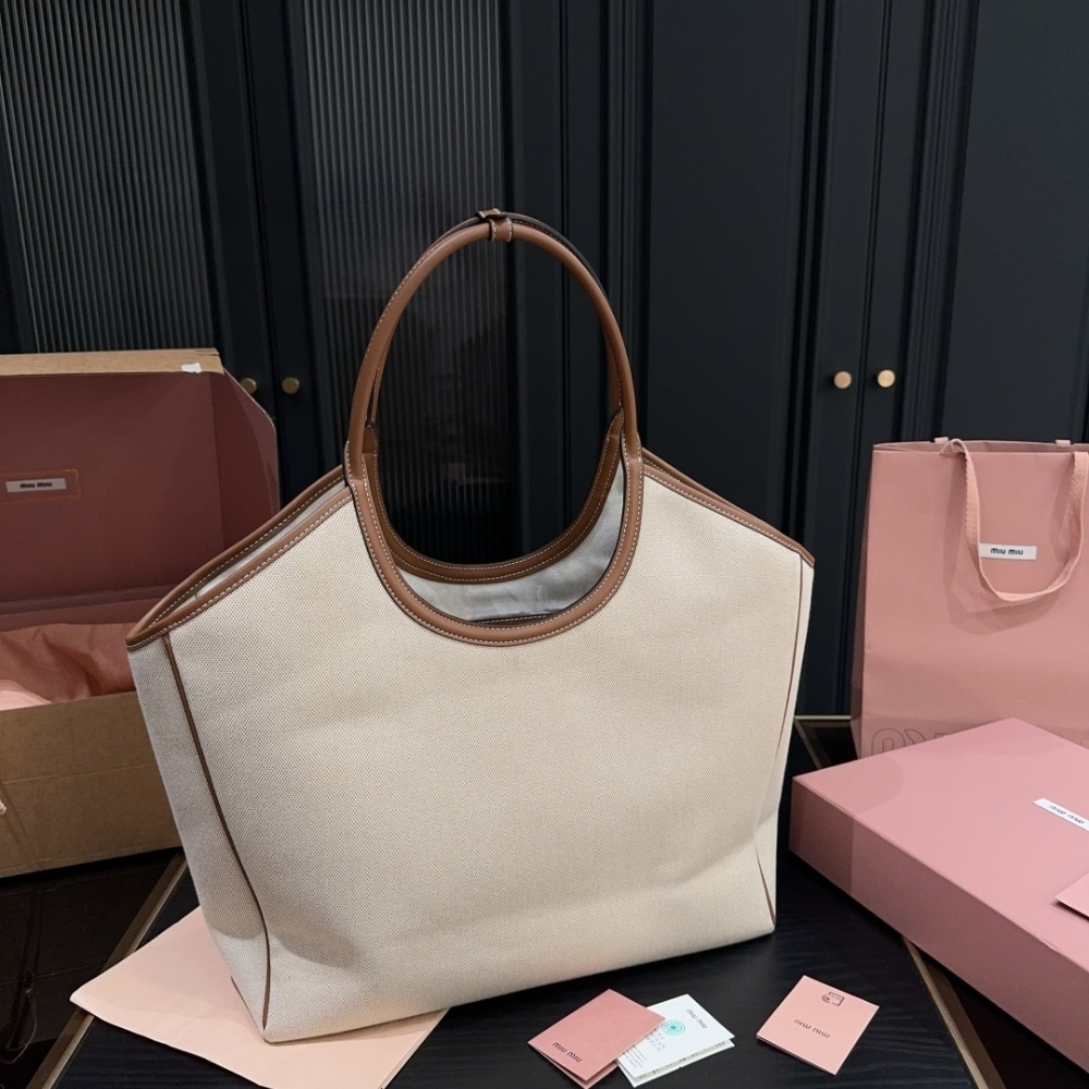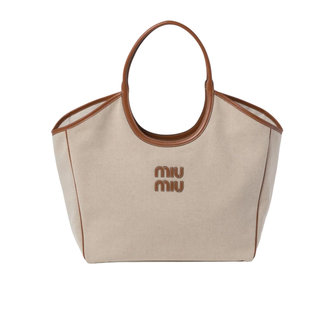 MIUMIU IVY TOTE BAG BEIGE AND BRANDY 38CM