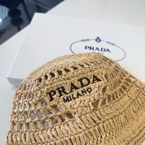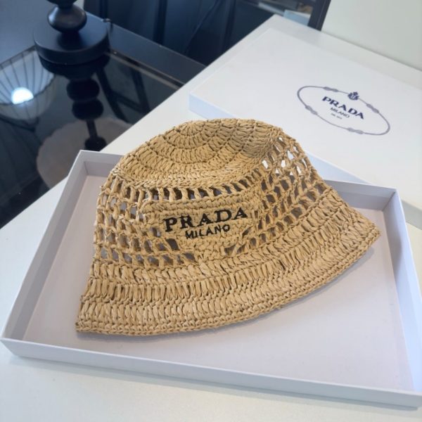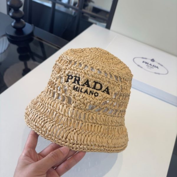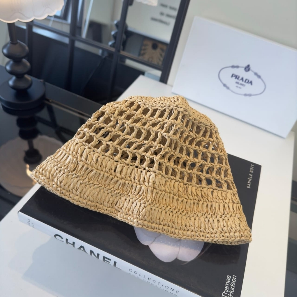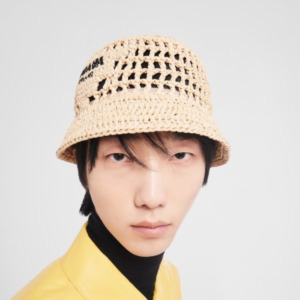 1:1 Replica Accessories – Prada Crochet Bucket Hat Raffia Natural 2HC137 2A2T F0018