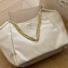The Prada Pomice Chain Tote in white is a vision of modern elegance, defined by its clean lines and graceful silhouette. Accented with refined chain handles, it radiates timeless prestige and elevates every look with effortless sophistication.