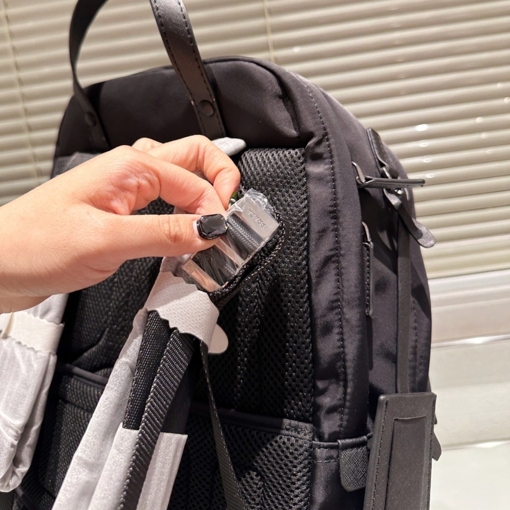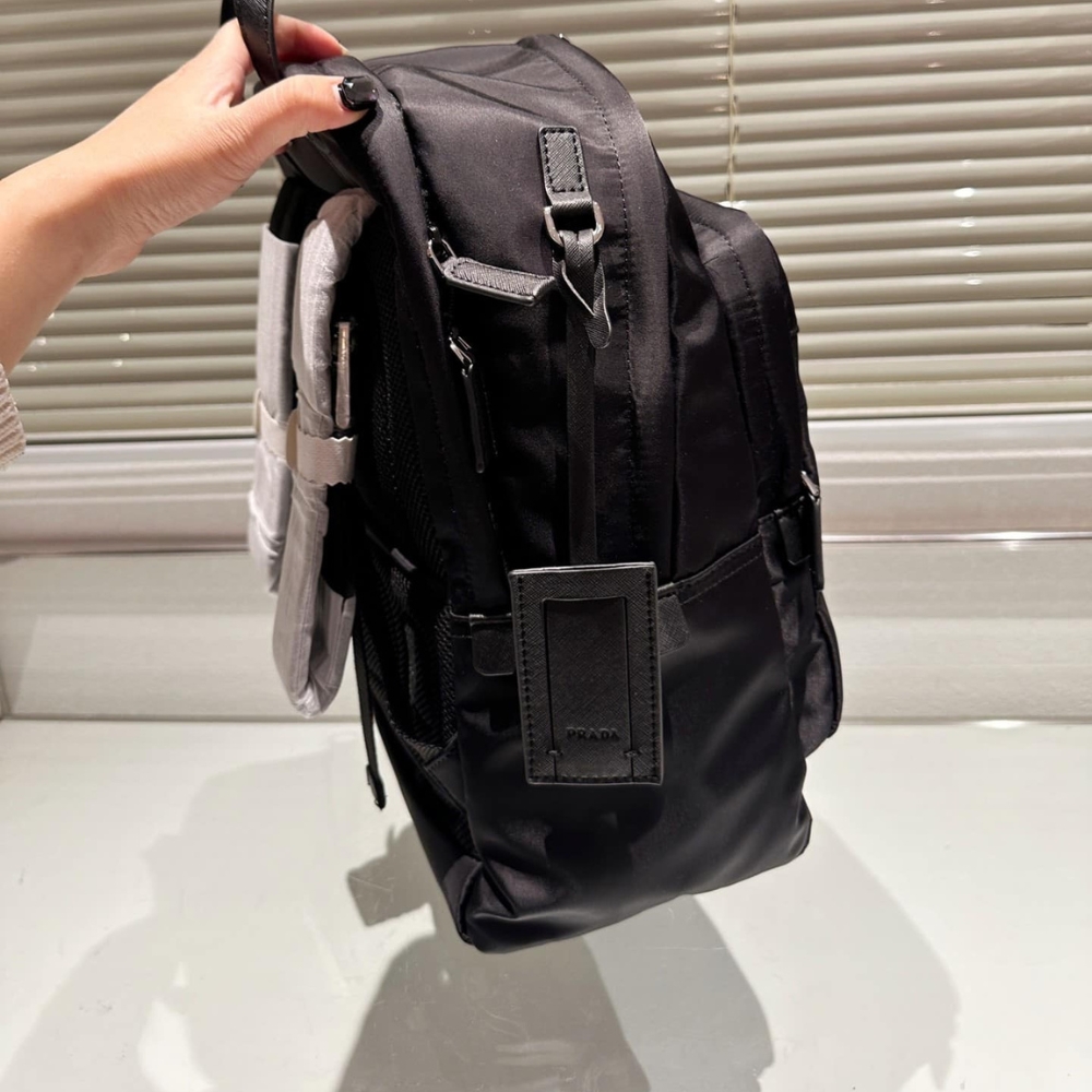 The Prada Re Nylon and Saffiano Backpack in black defines modern sophistication with its clean lines and unmistakable emblem of prestige. Designed for those who move with purpose and style, it embodies timeless elegance and effortless confidence.