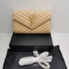 Saint Laurent Cassandre Matelassé Chain Wallet In Grain De Poudre Embossed Beige