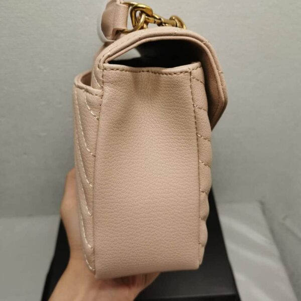 The Saint Laurent College Large Chain Bag Beige 25cm is a timeless piece crafted in quilted leather with the iconic YSL monogram. Featuring a top handle and a removable chain strap, it offers versatile styling as a shoulder or crossbody bag. Its structured silhouette and elegant beige tone make it a refined choice for both day and evening looks.