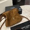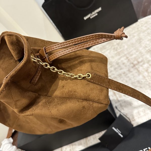 The shoulder pouch version of the JAMIE , decorated with the Cassandre and Carré rive gauche topstitching. This lightweight and compact bag features a chain strap for crossbody carry. Drawstring ties allow the sides to be cinched or expanded to create different silhouettes.