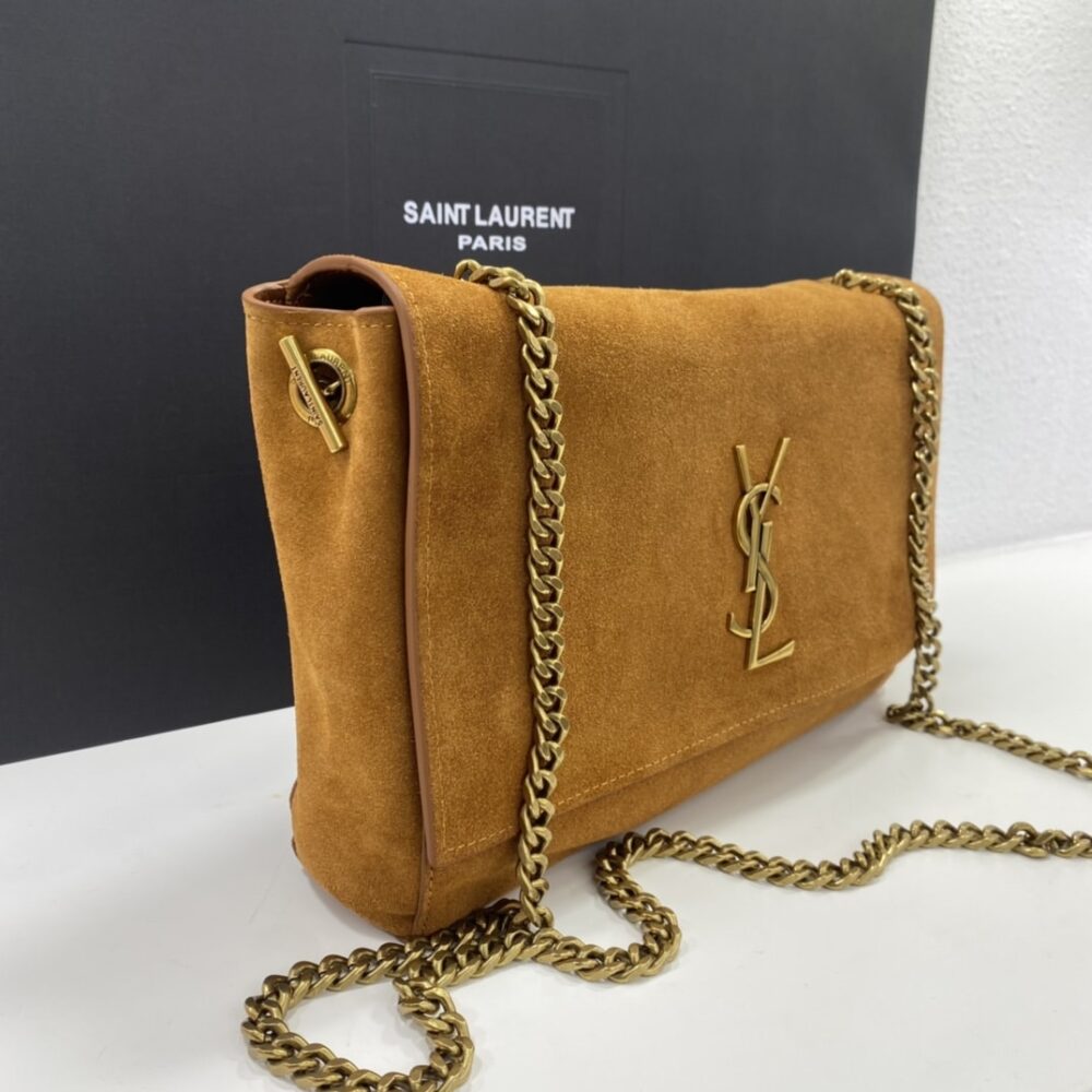 Saint Laurent Kate Medium Reversible Chain Bag In Suede Tan