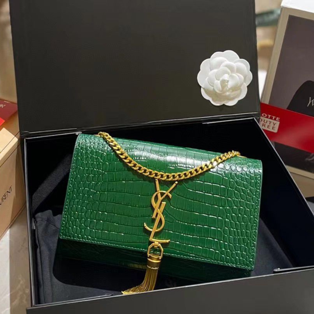 • Features Ysl Monogram And Tassel.