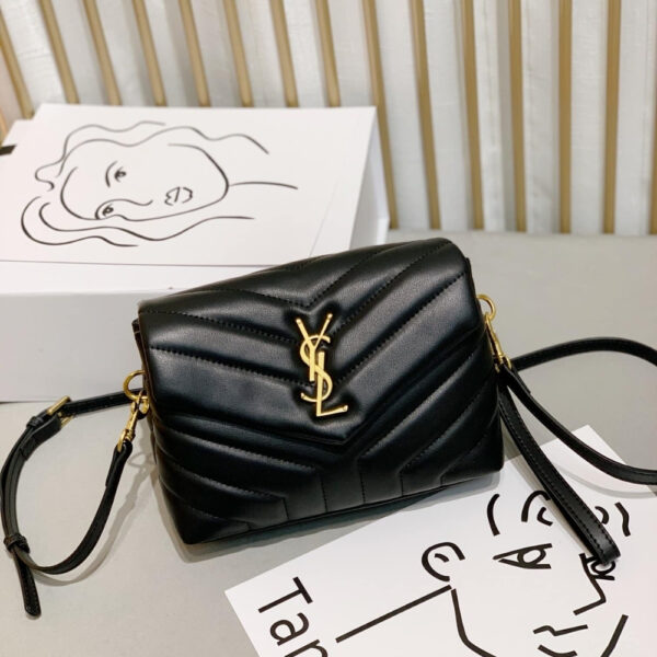 Saint Laurent Loulou Toy Strap Bag In Quilted Y Black With Bronze Toned Metal Hardware