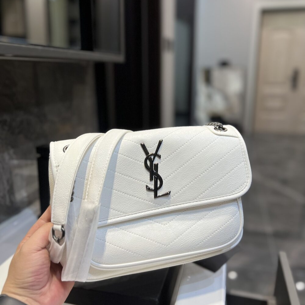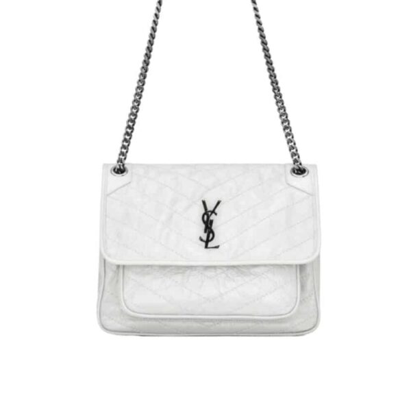 The Bag Saint Laurent Niki Baby Chain Bag, with the iconic initials in leather covered raised metal on the front, this bag continues in the vein of classic French style and simplicity. This Yves Saint Laurent Quilted Crinkle Leather Medium Niki Bag features crinkled leather that can be worn on the shoulder or crossbody. The interior is large enough to fit your small essentials.
