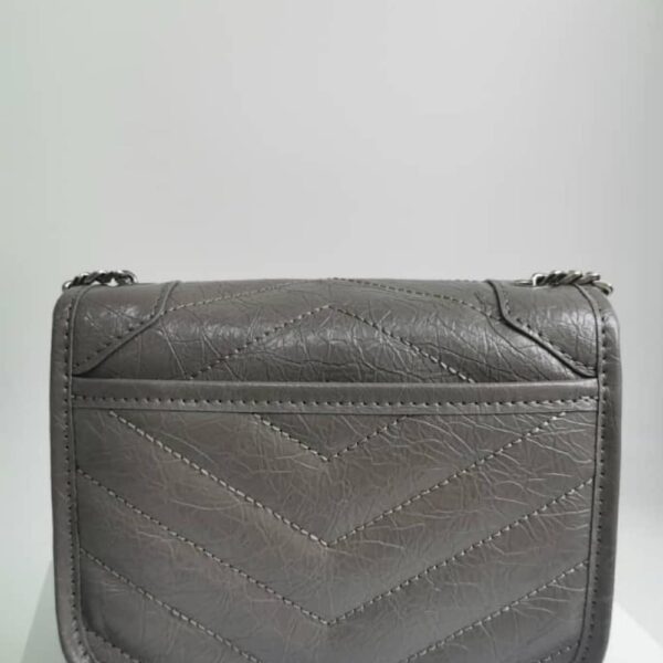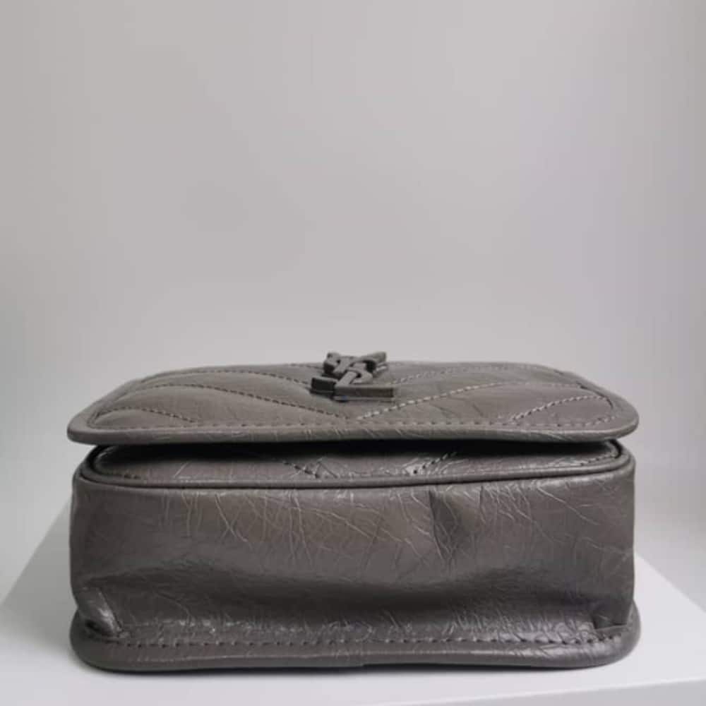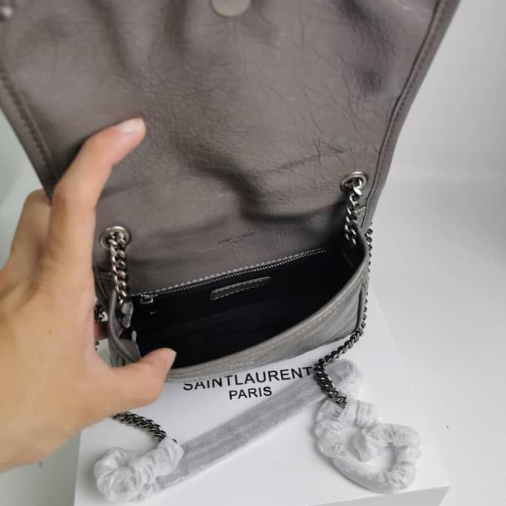 The Bag Saint Laurent Niki Vintage, It features a chevron-quilted design, tonal YSL monogram on the front, and a sliding chain strap with leather shoulder support. Elegant and edgy, it’s perfect for day-to-night wear.