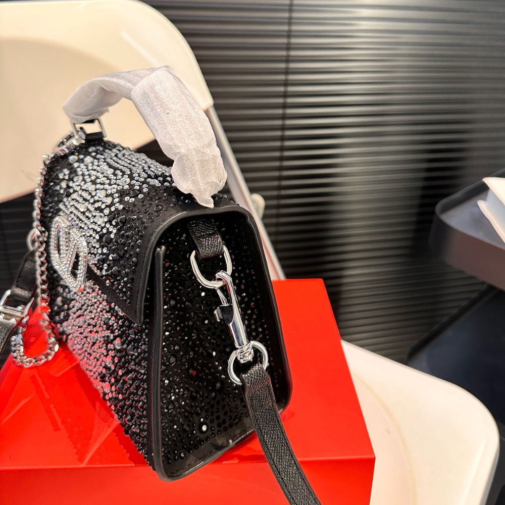 - The bag can be worn crossbody thanks to its extendable shoulder strap, and handheld thanks to its handle. Hardware with an antique-brass finish Magnetic closure with logo covered in Swarovski® crystals Leather shoulder strap with adjustable chain Protective feet