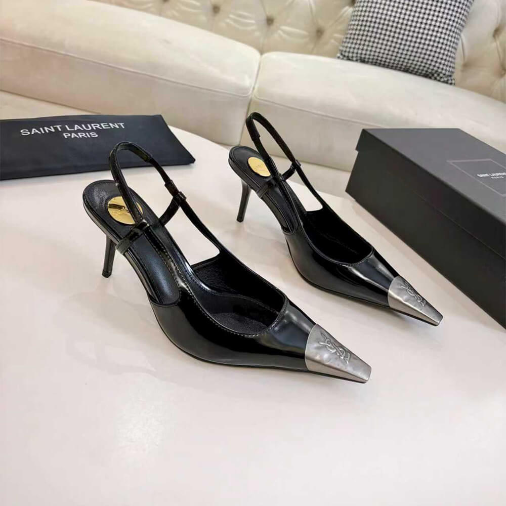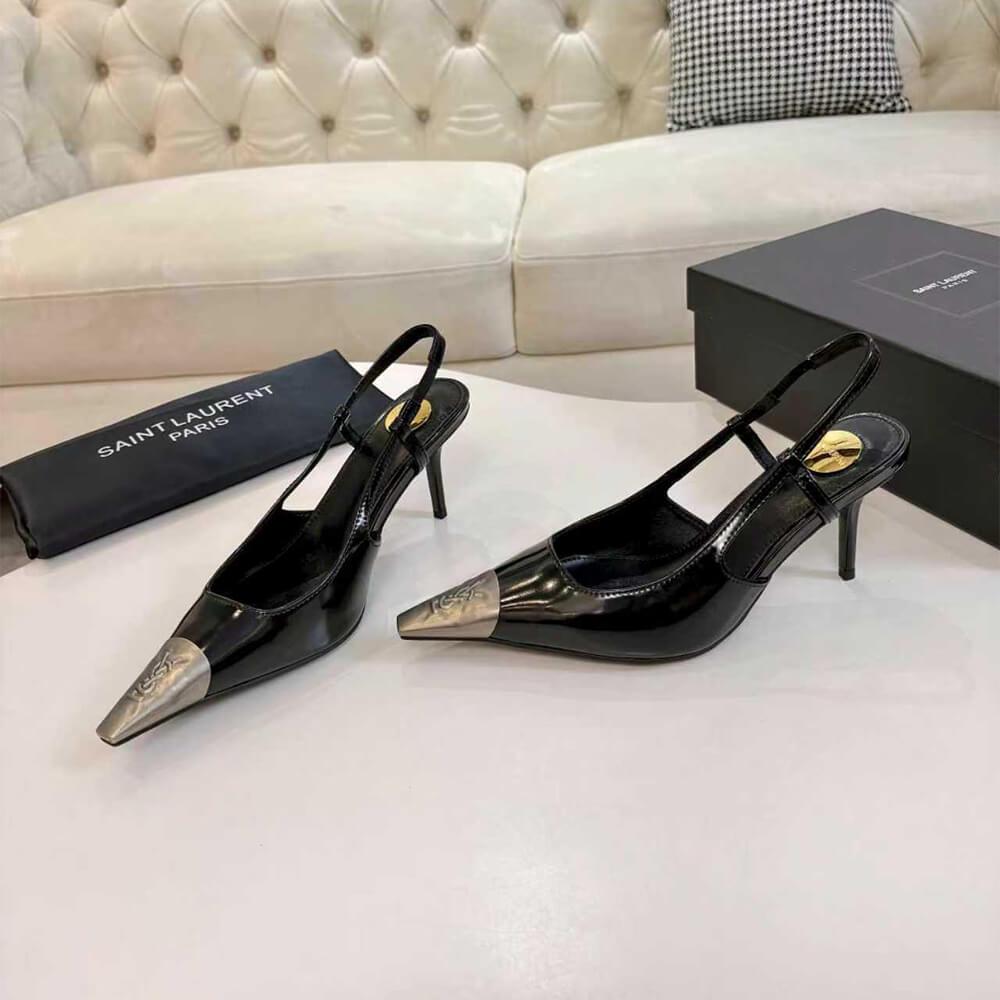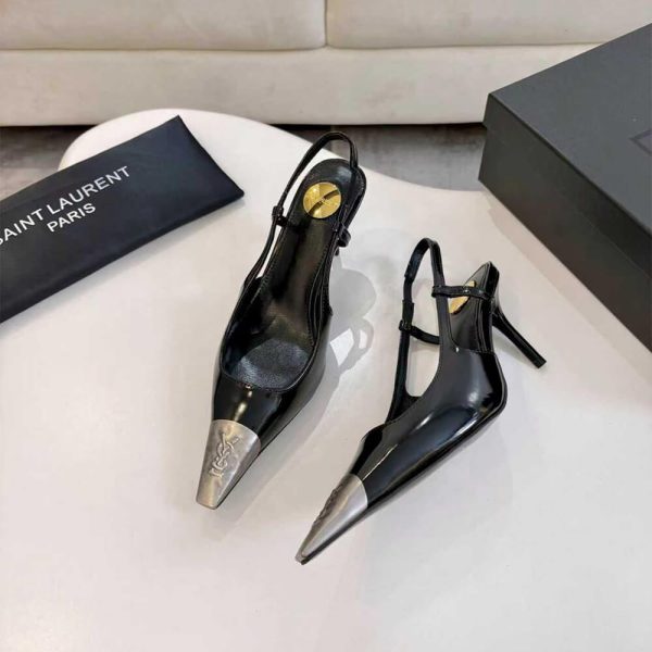 round saint laurent-engraved metal plaque on the insole